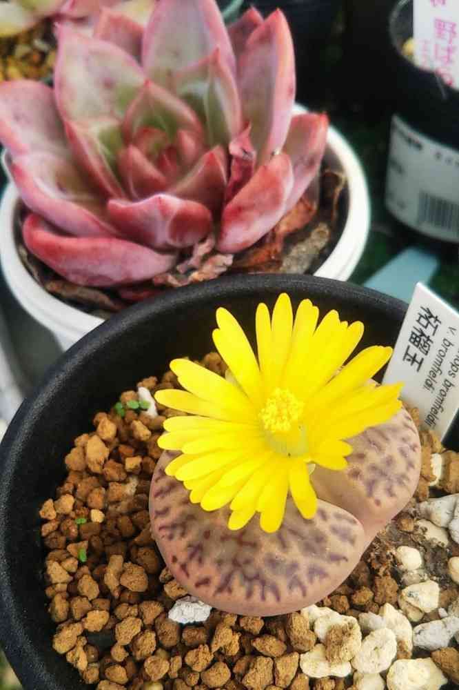 白花のリトープスも美しいのですが、ほとんどうちにあるのは黄色ですね。