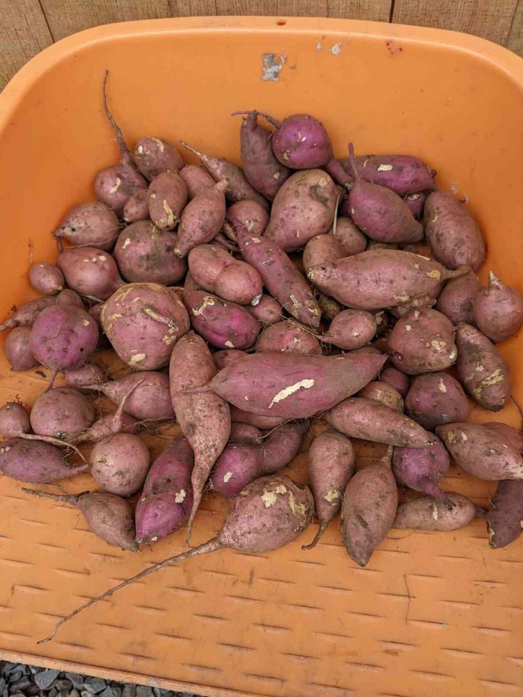 サツマイモ掘り上げてみました。小さいのばかりでしたが、初めての経験は来年に活かせたらと、思います。😋🍠
