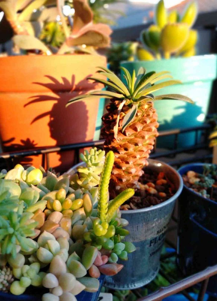 夕日を浴びるパイナップルコーンさん