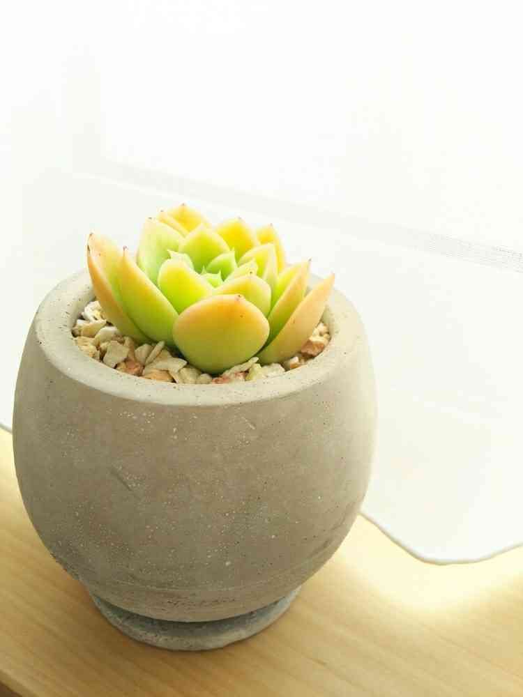 ポッテリとしたセメントポットに優しい色のエケベリアがよく似合う…と思う。