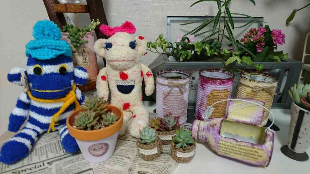 私も一目惚れしちゃって ソックモンキーとリメ鉢等を購入したんです🎶