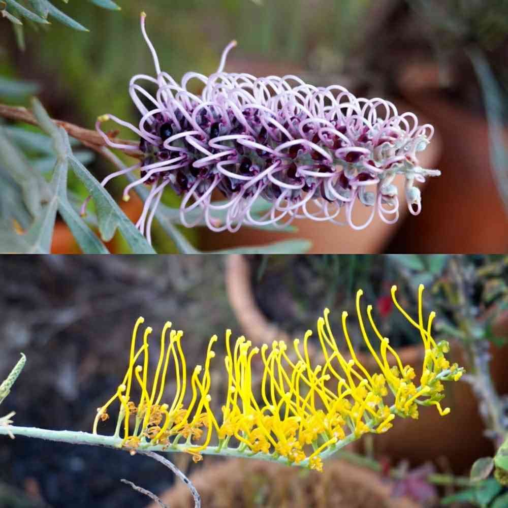小さな庭,グレヴィレア ゴールデンレイヤー,グレヴィレア ドーンパープルの投稿画像