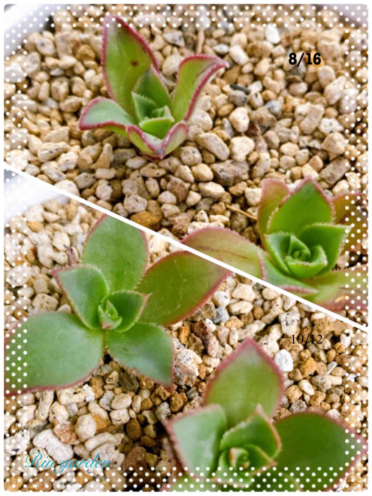 2ヶ月しか経ってないけど少しだけ大きくなった感じ😊新芽も出てきて、葉の縁は赤くなってきて可愛らしいです💕