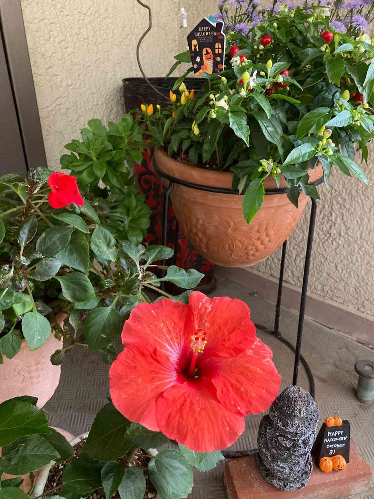 ユダコさんの玄関,インパチェンス,ハイビスカス アドニスオレンジの投稿画像