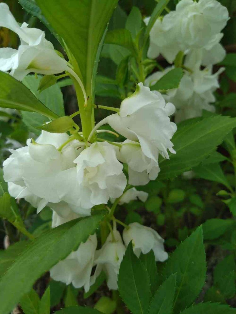 白い鳳仙花🌼 また種が飛んで咲き始めてきました🎶