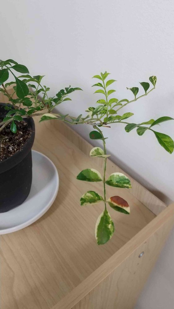 斑入りのところだけなぜか茶色くなって落葉してしまう。