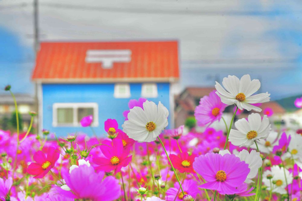 私の家の近くなんですが、コスモス畑が綺麗なので、コスモスを撮っていたら、郵便局🏣とコスモスがファインダーに入り、オ〜良い感じと思いました🤣