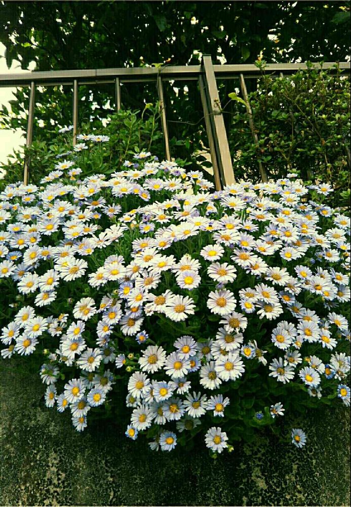 達磨菊は横に増えていくが、フエンスから下に垂れ下がっていく。