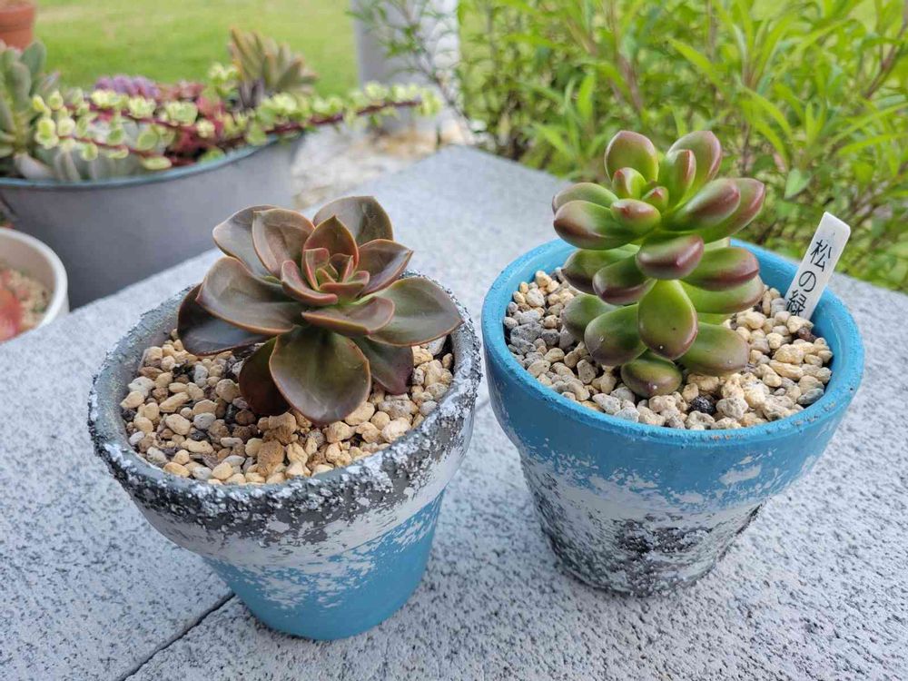 はい!アリガトウ この子たち可愛いの💕 松の緑の葉っぱは丸くてめっちゃツヤツヤ✨ メラコはもっと真っ赤になりますよん🔴