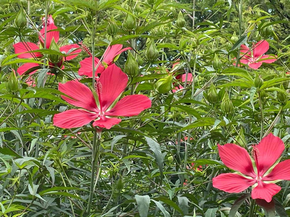この辺にはアメリカフヨウも有り赤くて背の高い花が集まっていました🌺🌺