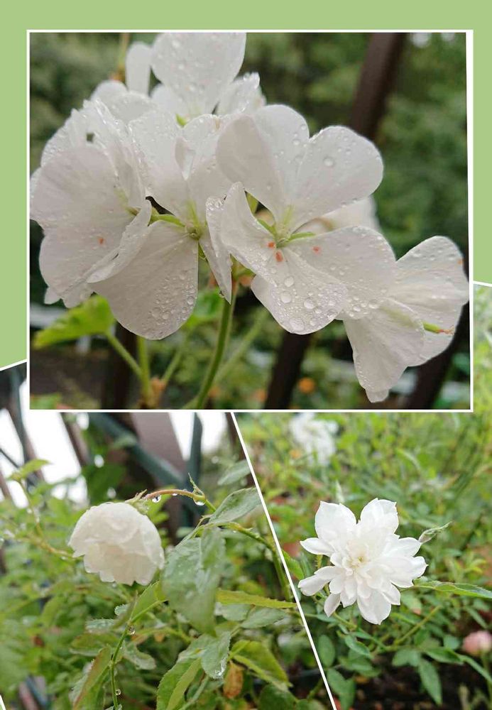 ꕤ…˖*ꕤ*。゚白いゼラニウム、ミニ薔薇も、清楚なお嬢さん♡可愛いね☺