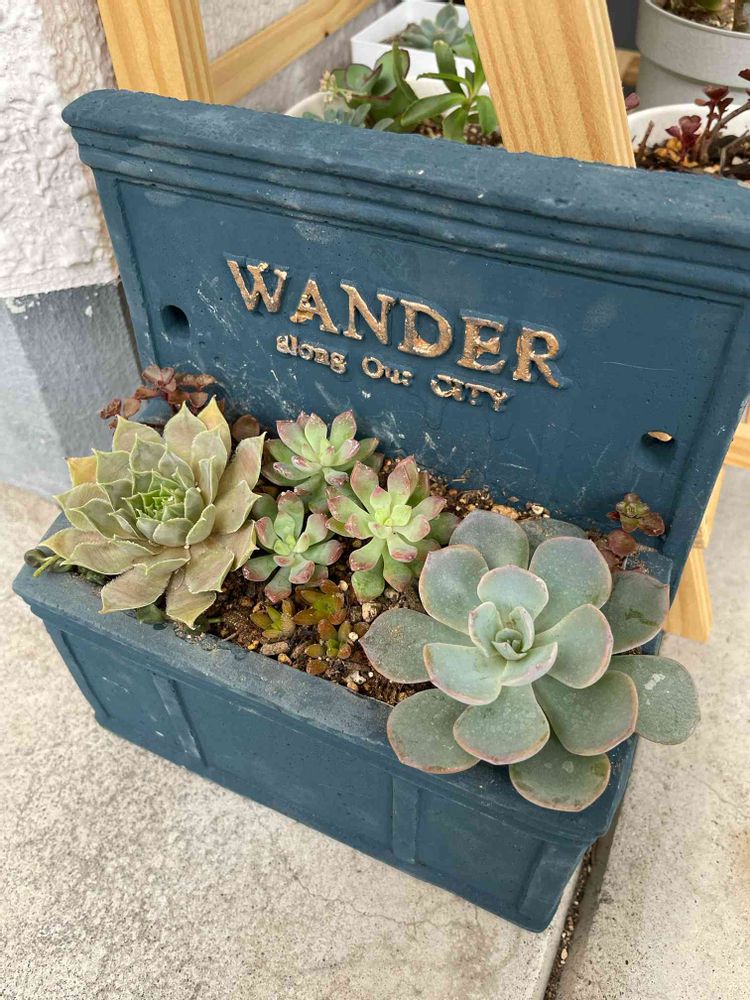 好みの鉢が手に入ったので寄せ植え。下手…💦