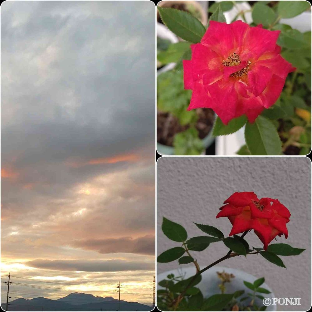 今日の夕暮れですが、西の伊吹山の上空にはチョッと気になるグレー☁️⛰️☁️
