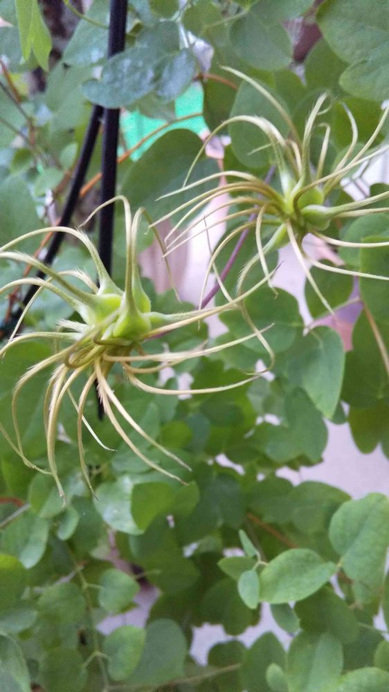 クレマチステキセンシスの花の後、地味だけど、クルクルが可愛い〰️☺️種を採ります〰️😃