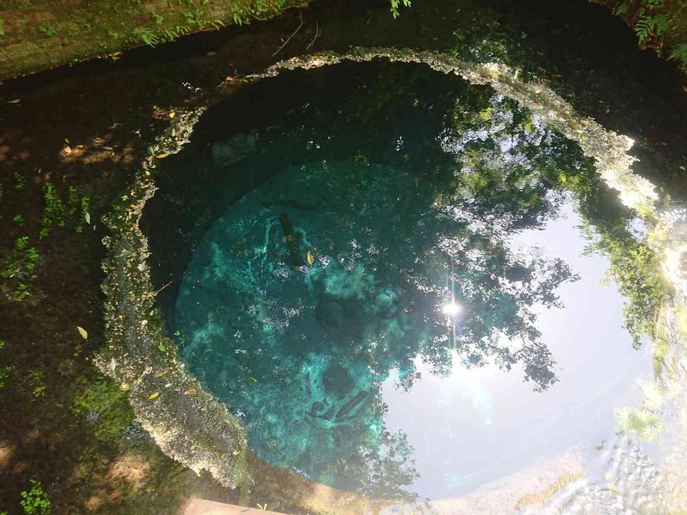 とてもキレイな透明な水で、日差しが入って深いブルーがキラキラ✨しています。湧水は何ヵ所もあって、薄いブルーのところもあり、色のグラデーションが素晴らしいです。