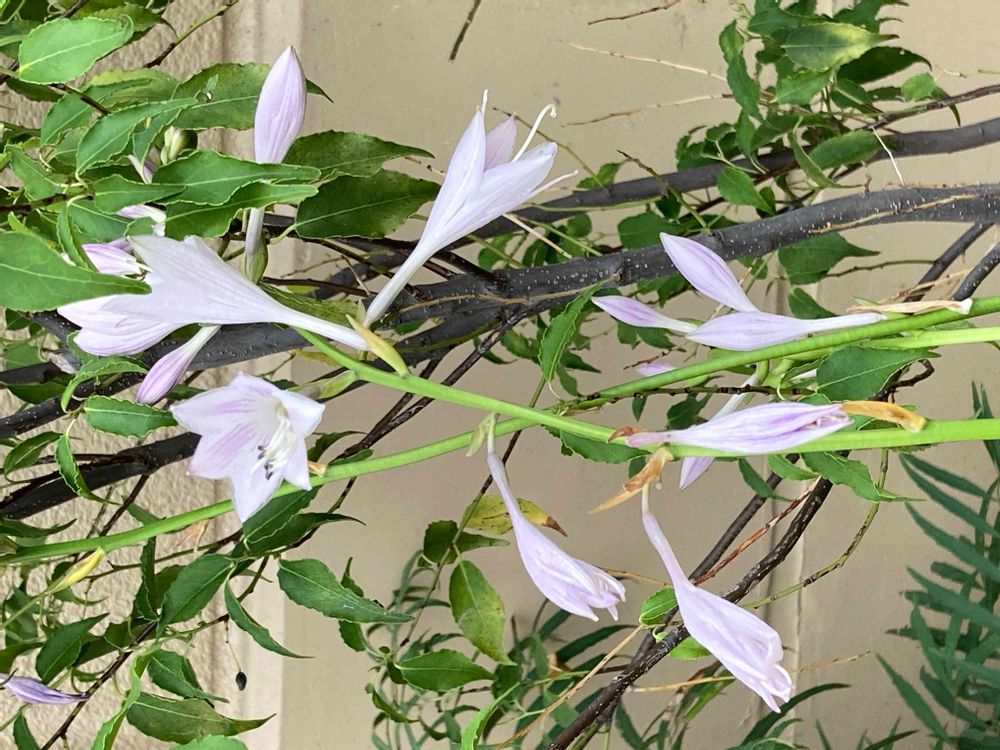 2021.10.12 15:57 ギボウシ。スマートフォンの機種変更に行ったauショップや激安スーパーが入っているビル前の花壇。花木の名前がプレートです表示してあり、手入れもよくされています。