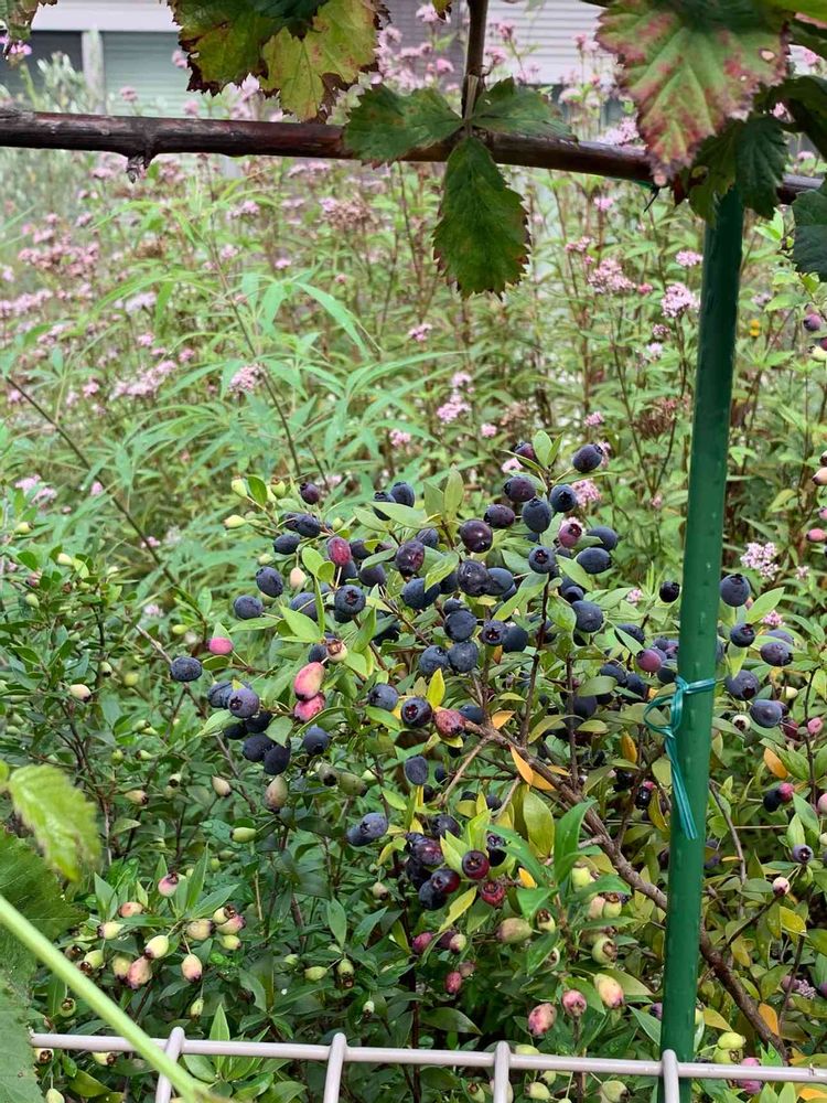 手前のブルーベリーのような実はマートル(ギンバイカ)でしょうか?