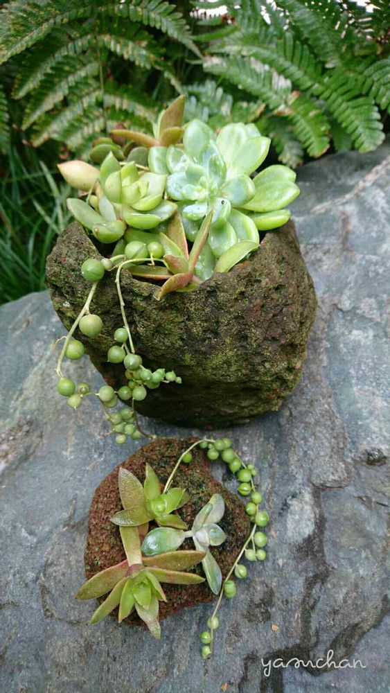 この多肉を植えた軽石の鉢は苔や観葉植物、サボテンなどを植えてもオシャレかな〜って思います♪😊