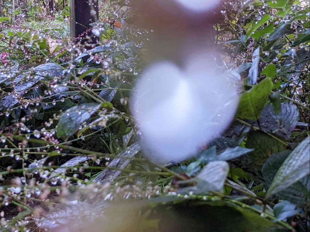 前投稿のアプローチのミズヒキ草に雨粒の白いハートが出来ていました。🤍✨✨