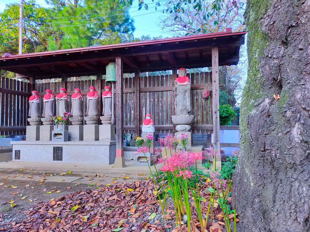 お地蔵様の頭巾と彼岸花が素敵なコラボです❤️