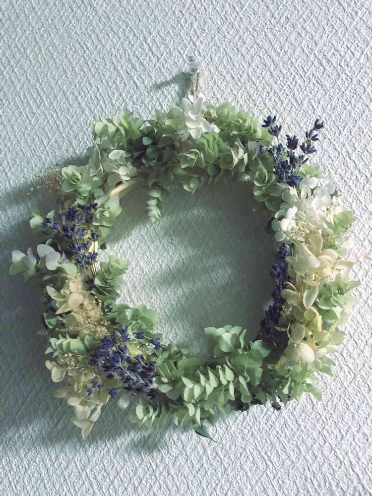 ドライにしていた、オレガノケントビューティと、ラベンダー、紫陽花でリース作り💗