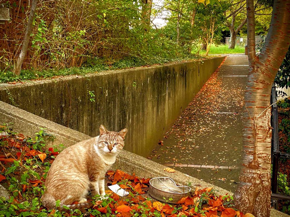 落ち葉🍂の中 悟った高僧のようなお方ですね🐈