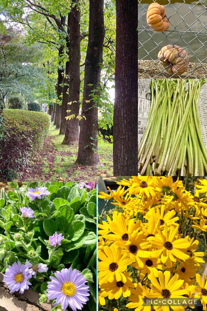 長い花壇のお花を見ながら遠い八百屋さんへ