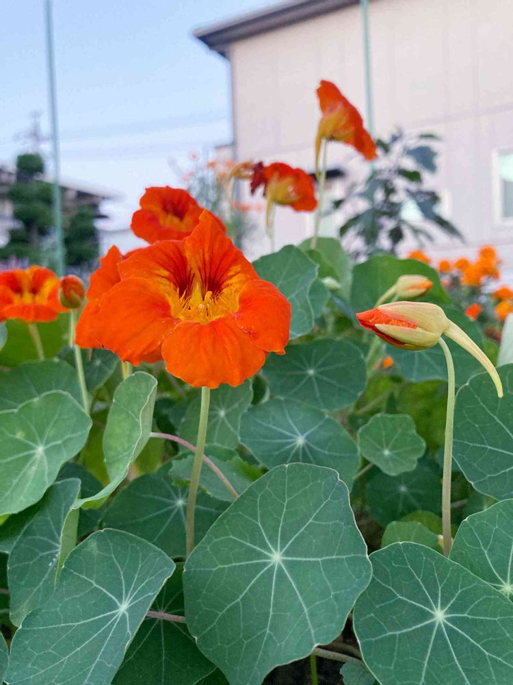 マリーゴールドと、ナスタチウムのオレンジの花がたくさん咲いてた🌼