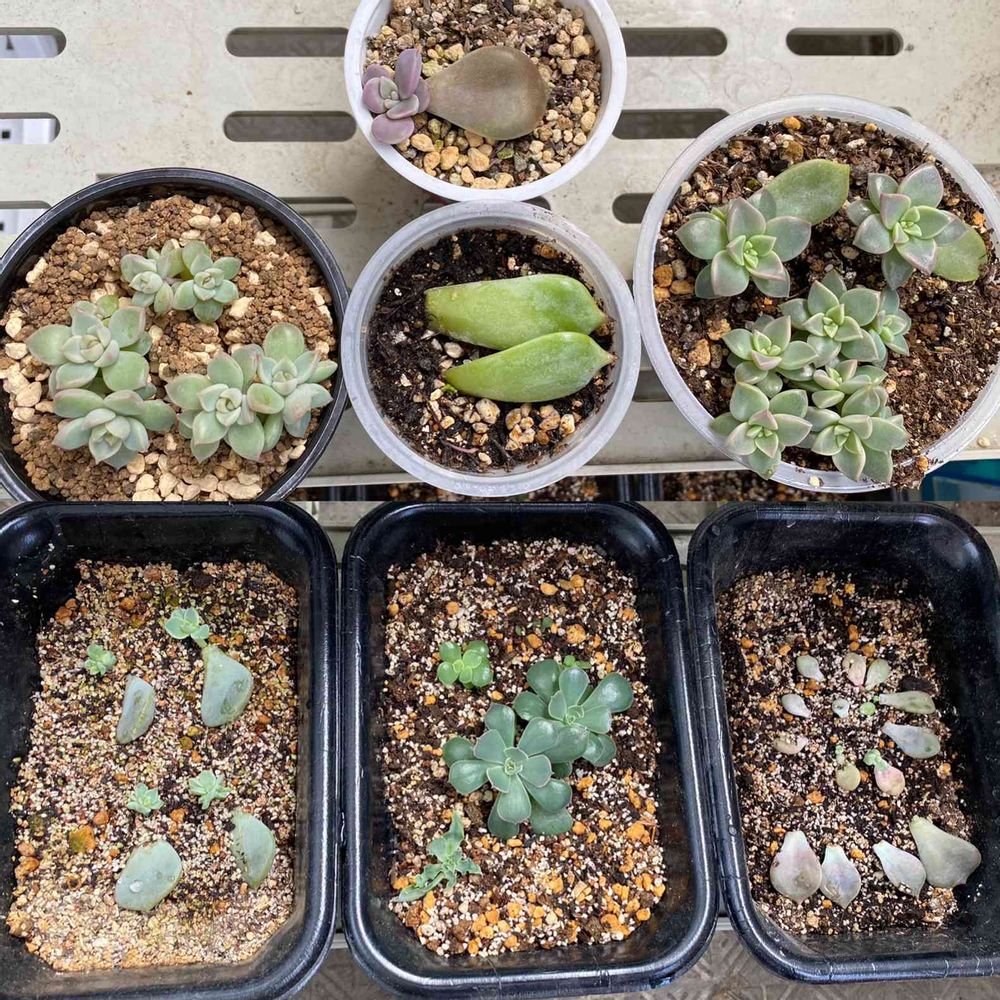星⭐️になった水蜜桃・桃太郎の葉挿しから芽🌱が出ました〜😍❣️今のところ1枚だけだけど😅