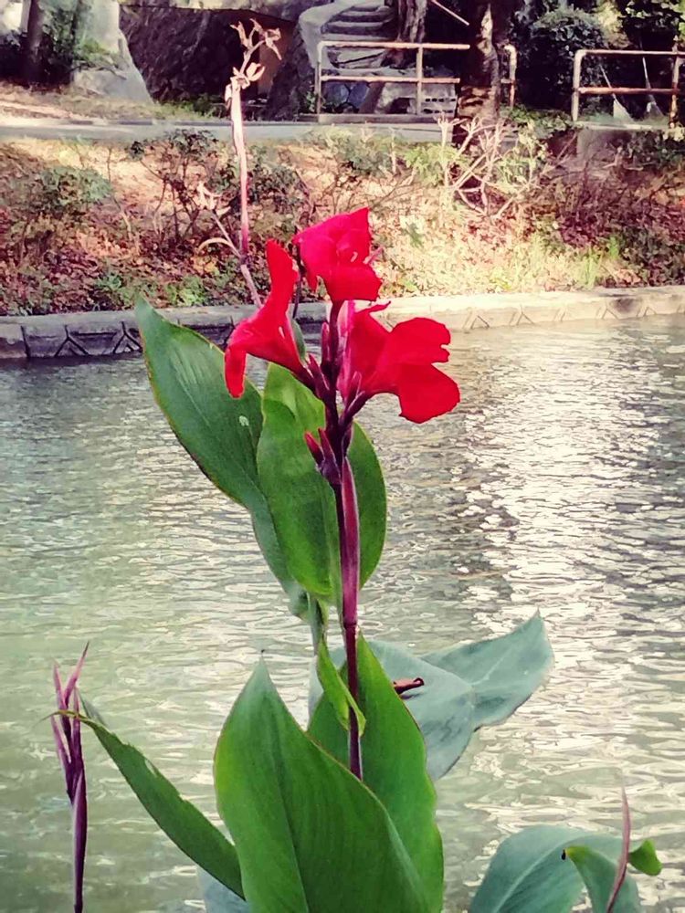 カンナの花がまだ咲いてるのですネ!🌺🌿🤗🎶