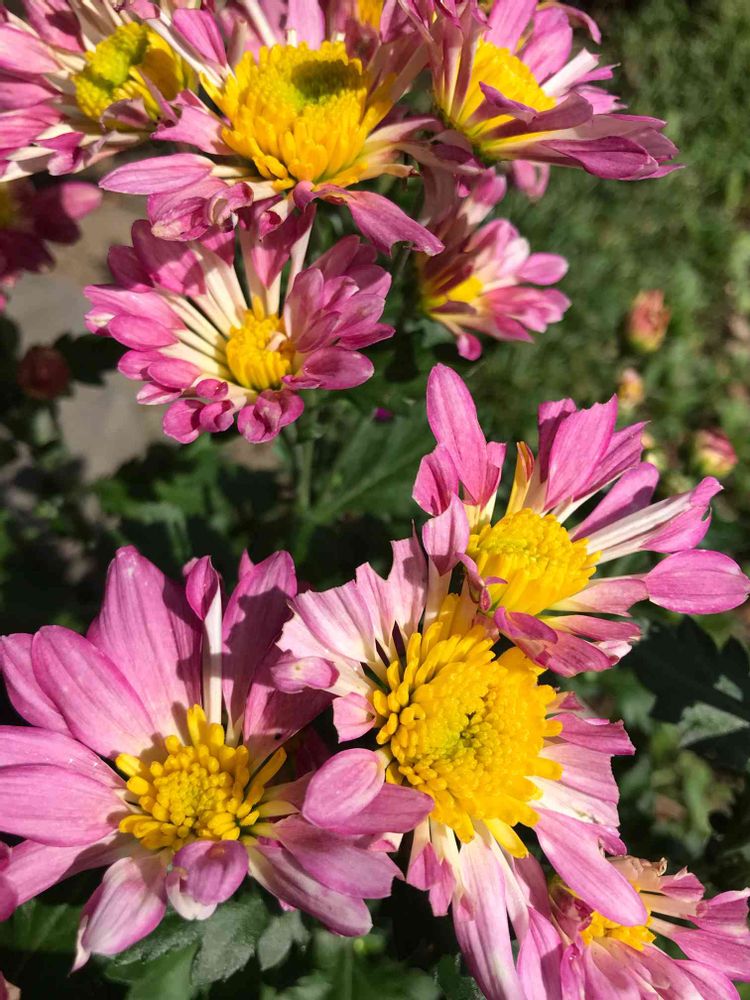 ピンクだけど〜真ん中に黄色〜初めて見る形かも〜♬菊の花もたくさん種類がありますね〜😍増えるといいですね〜♬