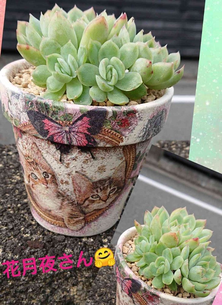 おはようございます🎵以前ねこぐるみさんに作って頂いたかわいい猫鉢に花月夜さん植え替えました❤️モリモリ増えてて嬉しい~🤗