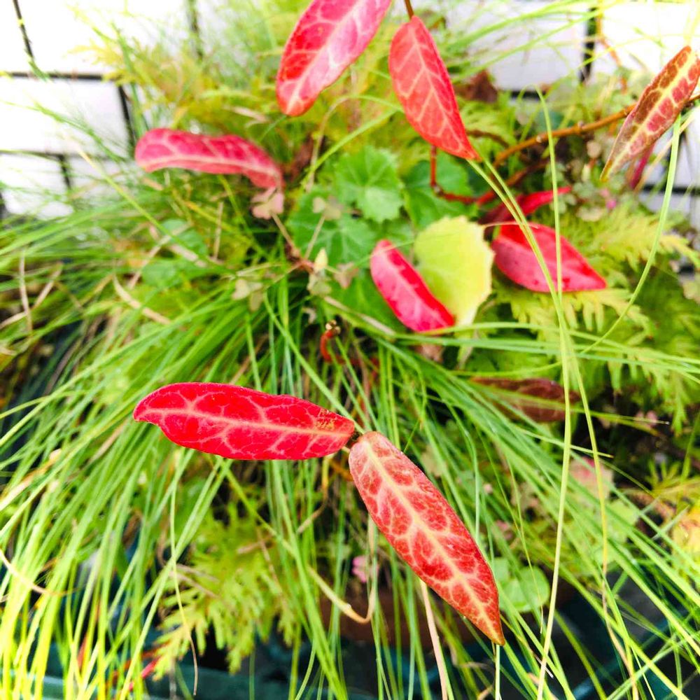 放置苔玉の初雪カズラが紅葉して散り始めました。