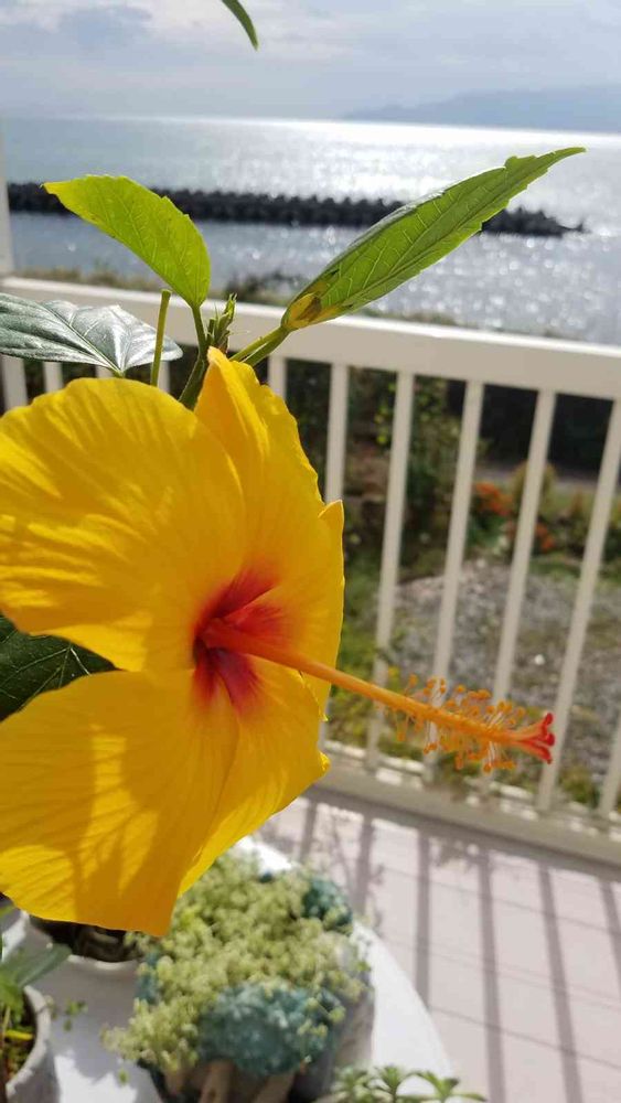 海沿いにお住まいなんですね💕素敵✨バルコニーとハイビスカス🌺めちゃ綺麗ですネ💕