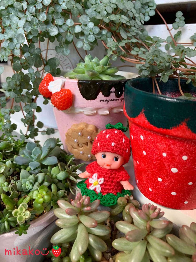いちごの鉢もキューピーちゃんもⓒⓤⓣⓔ♡だね₍₍ ( ๑॔˃̶◡ ˂̶๑॓)◞♡