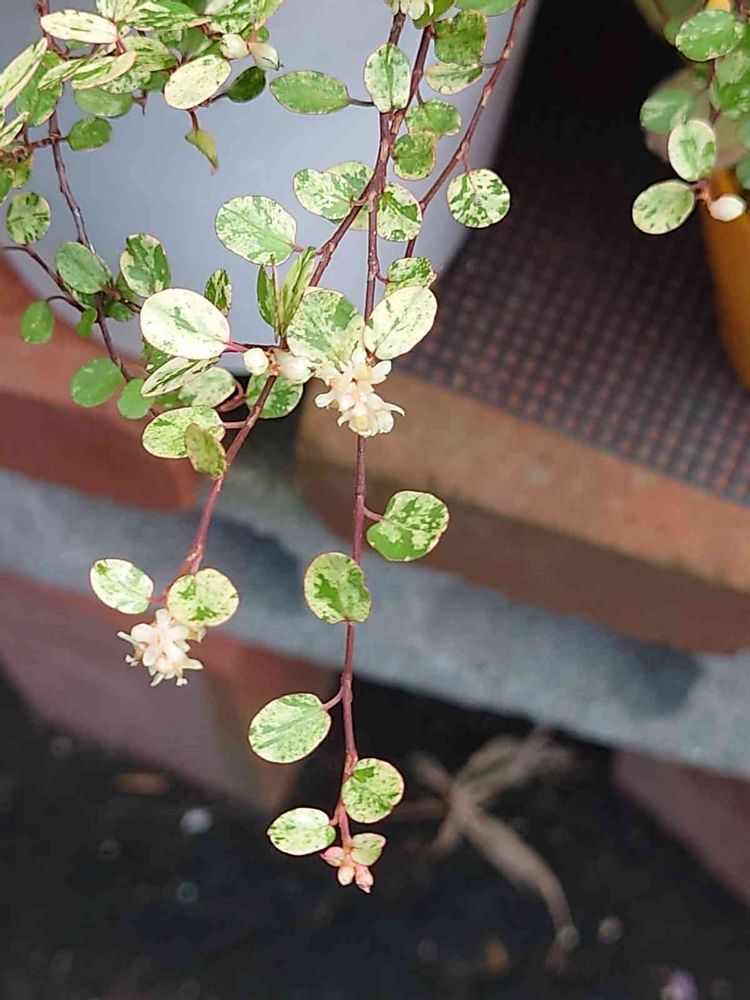 ワイヤープランツさん斑入りで分かりにくかったけど小さな花が咲いていました。すずらんの様な形のカワイイ実がなってくれると嬉しいなぁ〜🥰