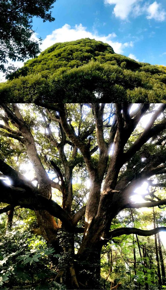 すっごく大きな木です。全体を撮ろうと後ろに下がると、他の木が邪魔で〜😅
