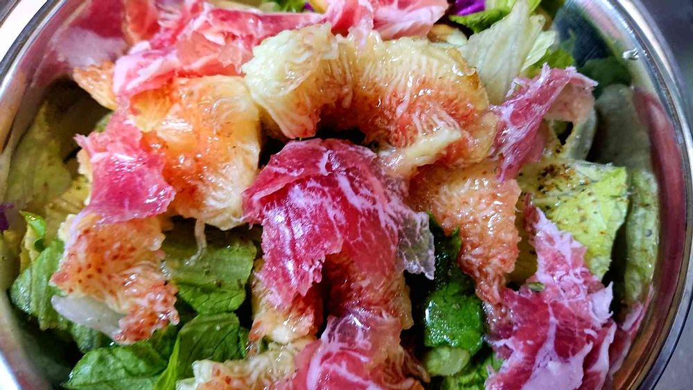 パリパリサラダにフルーツ美味しいですよね😄グレープフルーツも是非どうぞ😀