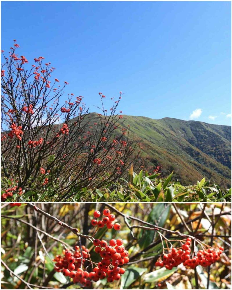 山を彩るナナカマドの赤い実。