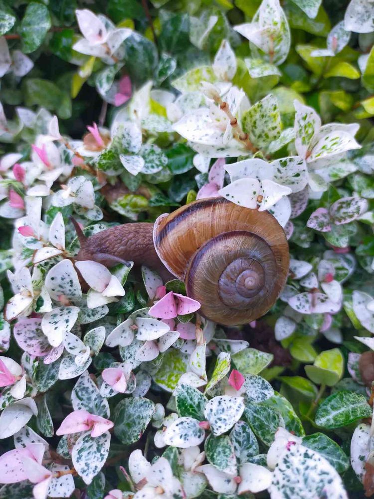 ハツユキカズラの上に私のお仲間がいますね。🐌🥰