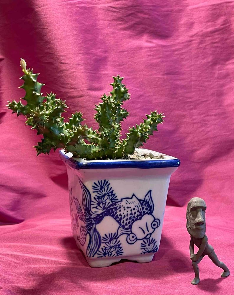 主役より、鉢の金魚【頂点眼かな?)より、やっぱりモアイが主役www