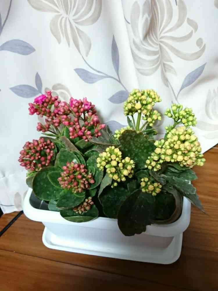 カランコエのピンクと黄色をかいました(*´▽`*)八重咲きの子なので、楽しみです😍💕