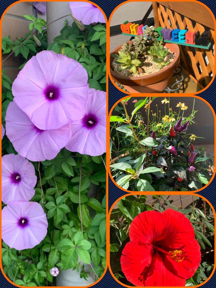 アサガオもハイビスカスもまだまだ元気ですね💕
