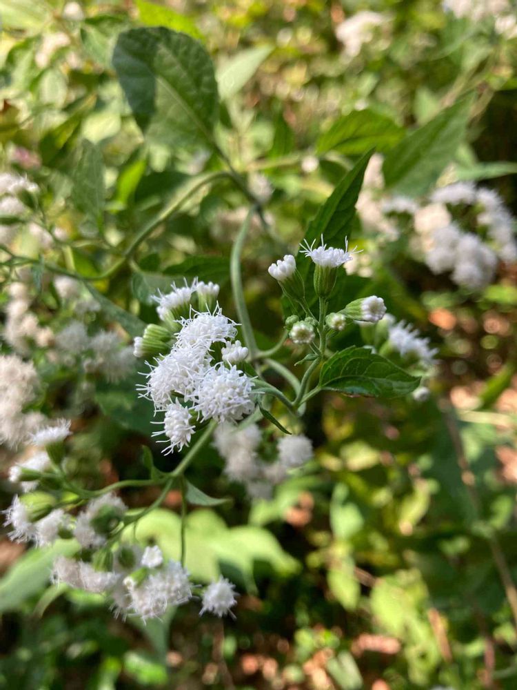 柔らかいポンポンのような白花が沢山ついた花に出会いました♪