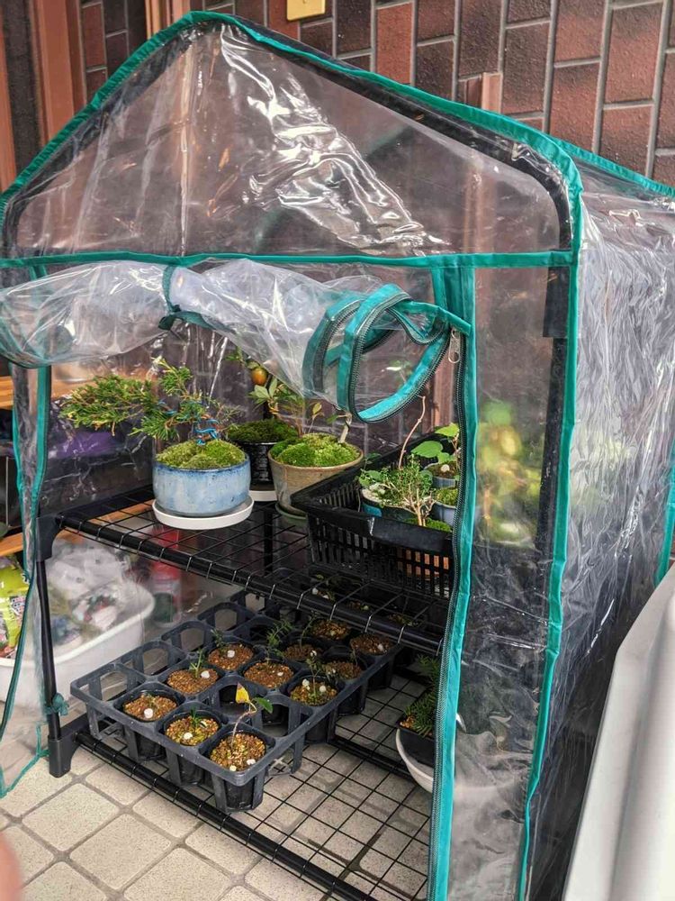 ほぼ同じ形のビニール温室、届いたばかりで何を入れようか迷ってます☺️💕