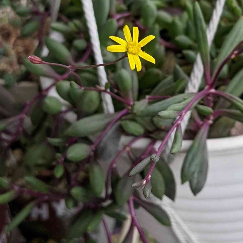 ルビーネックレスに黄色いお花が1輪咲きました 可愛い💛