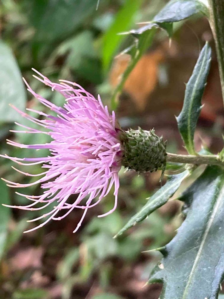 細い葉で優しい色のすらりとしたアザミが咲いてました。