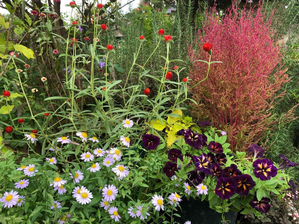 花友さんからの千日紅、ヨメナ、そして花友さんと行ったお店で迎えたペチュニア💗💗💗🎶