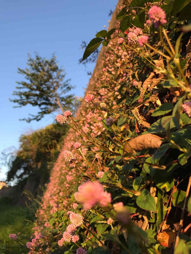 ポリゴナムって広がると分かってたけど、塀まで登っちゃうんだぁ⤴