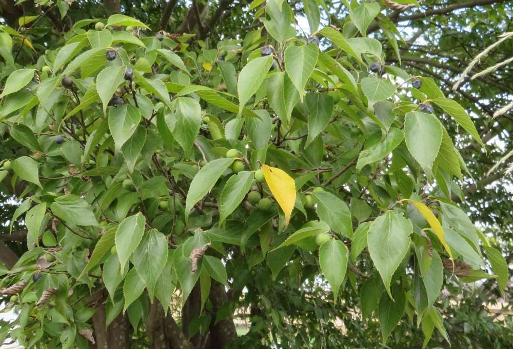 緑色の硬い実と落果寸前の黒く柔らかい実が混在している。